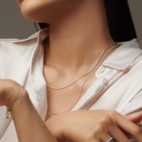 One of our favorite chains, this Round Snake Chain necklace is still substantive at 1.2mm wide. It is 23" at it's fullest length and has a 4" extension chain. Layer this with other chains but perfect by itself for an everyday special piece.