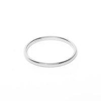This 1.5mm band has a flat profile with rounded edges softening this classic silhouette.  Wear alone, layered or stacked.
